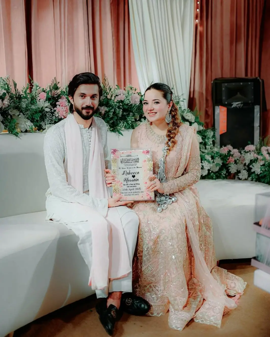 Pakistani social media sweethearts Rabeeca Khan and Hussain Tareen have once again melted hearts, this time with their date fix ceremony held on 25th April 2025 at Rabeeca’s family home. The adorable couple, who got engaged last year, celebrated this beautiful milestone in an intimate yet glamorous gathering attended by close family and friends.